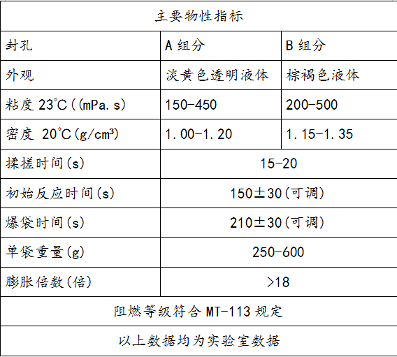 美固德封孔是一种双组分液态聚合物材料,由树脂和固化剂组成。本产品可以实现对不同深度、孔径和角度的瓦斯钻孔快速封堵,同时具有粘接力强、密封性好、遇水发泡和反应速度易调整、操作简便等优点。