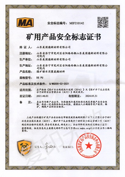 山东美固德新材料有限公司为高新技术企业,坐落于中国工业强区、大禹定九州之地的山东省级工业园-兖州化学助剂产业园。公司2011年始建于青岛,2016年为济宁市重点招商项目落户于兖州,公司专注于为煤矿安全生产提供可靠的矿用化学材料和解决方案。公司2018年同青岛科技大学(原青岛化工学院)高分子科学与工程学院签订技术合作协议,分别在兖州和青岛设立了研发实验室和应用发展实验室,并建立了研究生实践基地。2021年3月12日与中国聚氨酯协会特聘专家团队签订了战略合作协议,致力于聚氨酯高端领域的配方设计、生产及应用,为生产优质的产品提供强有力的技术保障。