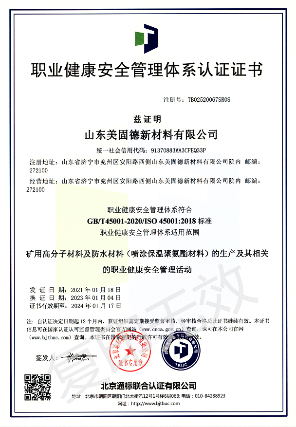 山东美固德新材料有限公司为高新技术企业,坐落于中国工业强区、大禹定九州之地的山东省级工业园-兖州化学助剂产业园。公司2011年始建于青岛,2016年为济宁市重点招商项目落户于兖州,公司专注于为煤矿安全生产提供可靠的矿用化学材料和解决方案。公司2018年同青岛科技大学(原青岛化工学院)高分子科学与工程学院签订技术合作协议,分别在兖州和青岛设立了研发实验室和应用发展实验室,并建立了研究生实践基地。2021年3月12日与中国聚氨酯协会特聘专家团队签订了战略合作协议,致力于聚氨酯高端领域的配方设计、生产及应用,为生产优质的产品提供强有力的技术保障。